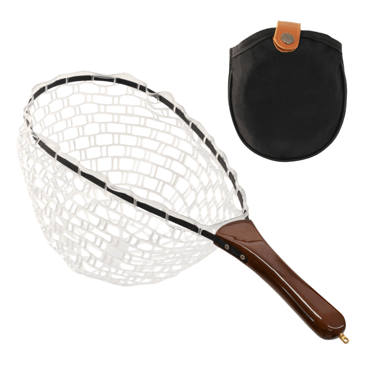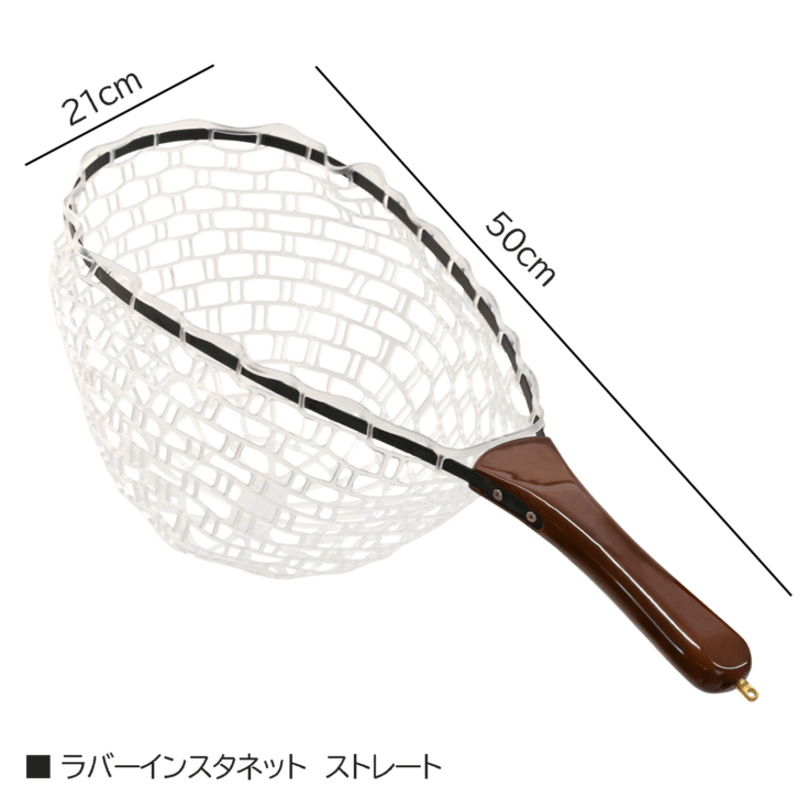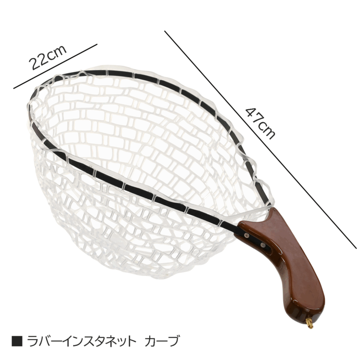 魚体に傷つけにくいラーネット使用でウッド調グリップを採用